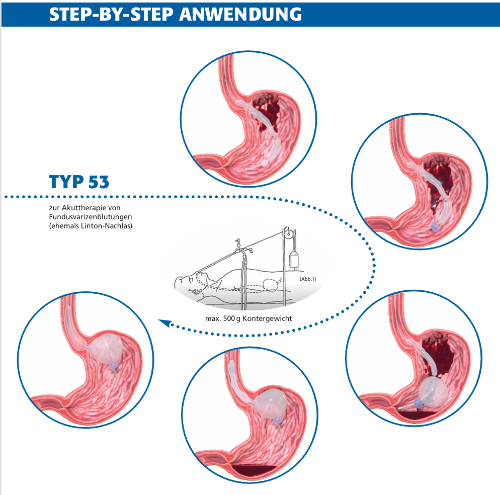 - Typ 53 (ehemals Linton-Nachlas): für Fundusvarizenblutungen.