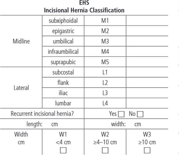 Muysoms FE, Miserez M, Berrevoet F, et al (2009) Classification of primary and incisional abdominal wall hernias. Hernia 13(4):407–414. https://doi.org/10.1007/s10029-009-0518-x