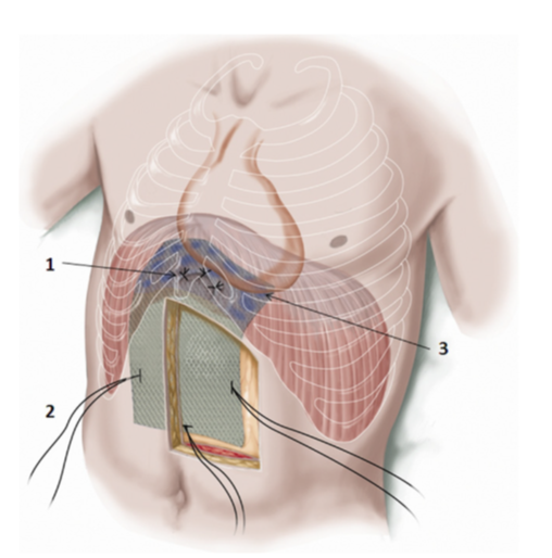 63.4.1.1 Versorgungstechnik Morgagni-Hernie mit intraperitonealer 3-Komponenten-Fixation